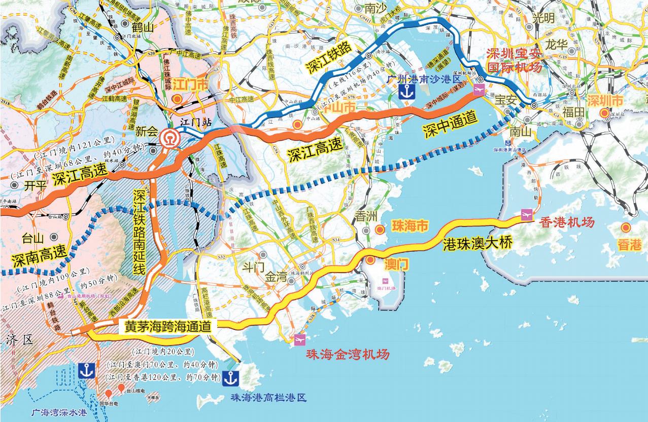 ????當(dāng)前,江門在軌道交通方面,已開通廣珠鐵路、廣珠城軌、江湛鐵路、南沙港鐵路,深江鐵路、珠肇高鐵正加快建設(shè),廣佛江珠城際正積極開展前期工作,江門站作為珠西綜合交通樞紐的地位不斷鞏固提升;在高速路網(wǎng)方面,已建成通車廣中江高速、中開高速、中江高速改擴(kuò)建等13條高速公路,對(duì)外加快深南高速、南新高速、廣臺(tái)高速江門臺(tái)山至開平段、江肇第二高速等項(xiàng)目前期工作,對(duì)內(nèi)扎實(shí)推進(jìn)江鶴高速改擴(kuò)建、銀洲湖高速等項(xiàng)目建設(shè),已形成“外引內(nèi)聯(lián)”的高速廊道。