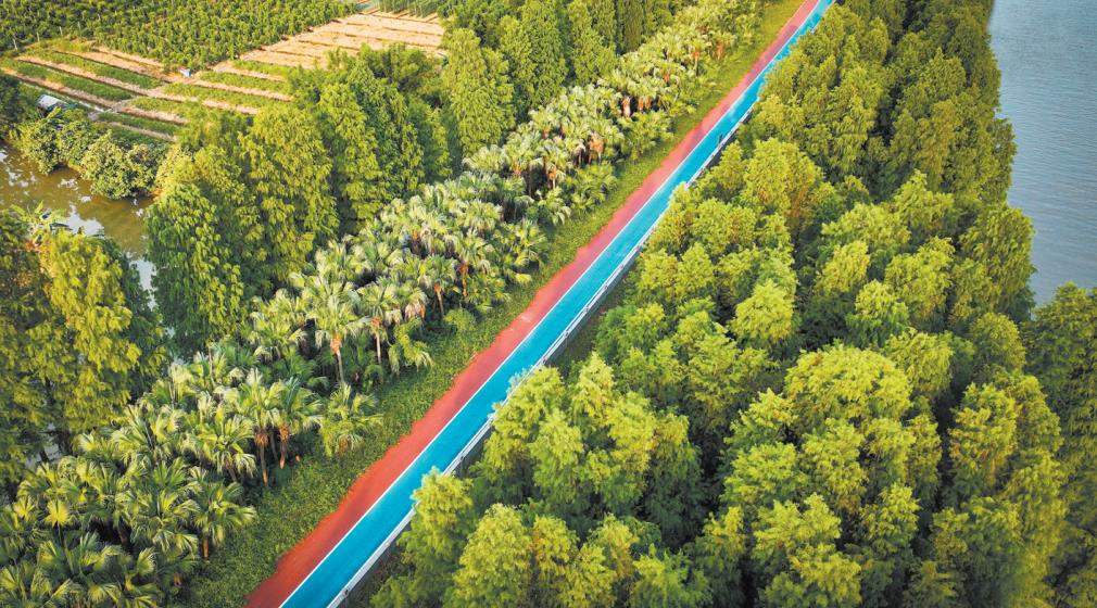 江海區(qū)鄉(xiāng)村綠廊碧帶串聯(lián)多個公園和自然景觀區(qū),成為市民休閑娛樂的好去處。 邱昱 攝