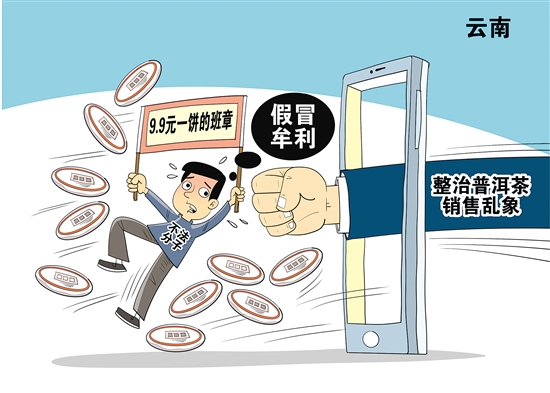 ????云南普洱茶在全國茶葉市場有一定的競爭力,特別是一些“名山”“名寨”茶葉受到市場認可,但也成為不法分子假冒牟利的對象。時下,“9.9元一餅的班章”“10元一餅的冰島”等廣告在網(wǎng)絡平臺和部分商店出現(xiàn),影響了普洱茶產(chǎn)業(yè)健康發(fā)展。對此,云南市場監(jiān)督管理部門加大了監(jiān)管打擊力度。??????? ??新華社 發(fā)