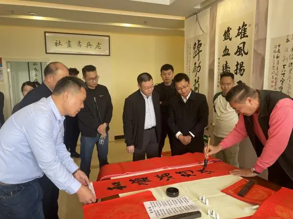 揭牌儀式當(dāng)天,老班長工作室組織了揮毫潑墨活動?!袄习嚅L工作室,傳承雅韻,尋覓知音”“歲月悠悠,愿老班長工作室蒸蒸日上”……滿載著對老班長工作室深厚祝福的佳聯(lián)新鮮出爐。老班長們興致盎然,熱情洋溢地為蒞臨的退役軍人代表贈送墨寶。