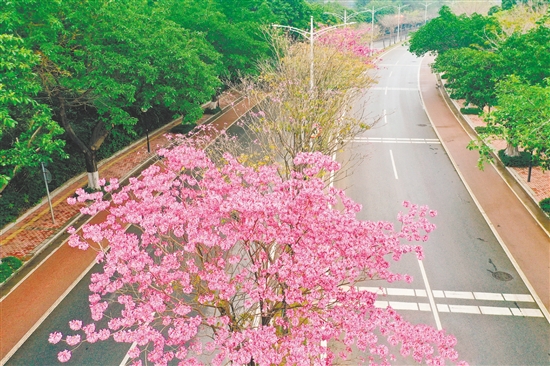 ????為提升龍灣路作為城市重要出入路段的綠化景觀,蓬江區(qū)城市管理和綜合執(zhí)法局在龍灣路中間綠化帶種植了約300棵紫花風(fēng)鈴木,并對(duì)道路沿線的雜草雜物進(jìn)行了全面清理,同時(shí)對(duì)綠化帶進(jìn)行補(bǔ)種。此外,該局還以江門市花簕杜鵑為主題,對(duì)龍灣路與江門大道輔道交會(huì)處的4個(gè)分流島以及龍灣公園鄰近道路一側(cè)的邊坡進(jìn)行了景觀提升,增設(shè)微景觀節(jié)點(diǎn),旨在打造“一路一特色,四季有花賞”的城市風(fēng)景線,為市民提供更加優(yōu)美宜人的出行環(huán)境。