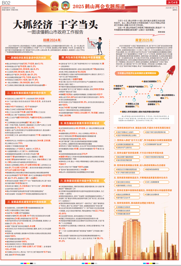 ????3月5-6日,鶴山市第十六屆人民代表大會第五次會議勝利召開。會上,鶴山市政府工作報告回顧了2024年鶴山市政府工作情況,部署2025年工作任務。