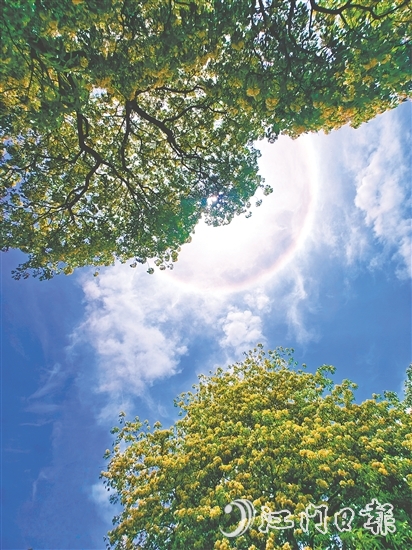 ????記者提醒大家,日暈雖美,但不要長(zhǎng)時(shí)間用肉眼觀看,以免灼傷眼睛。