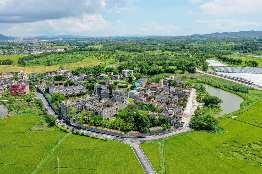 在“全國文明村”開平市塘口鎮(zhèn)強(qiáng)亞村,碉樓古韻與文明新風(fēng)相映成趣。