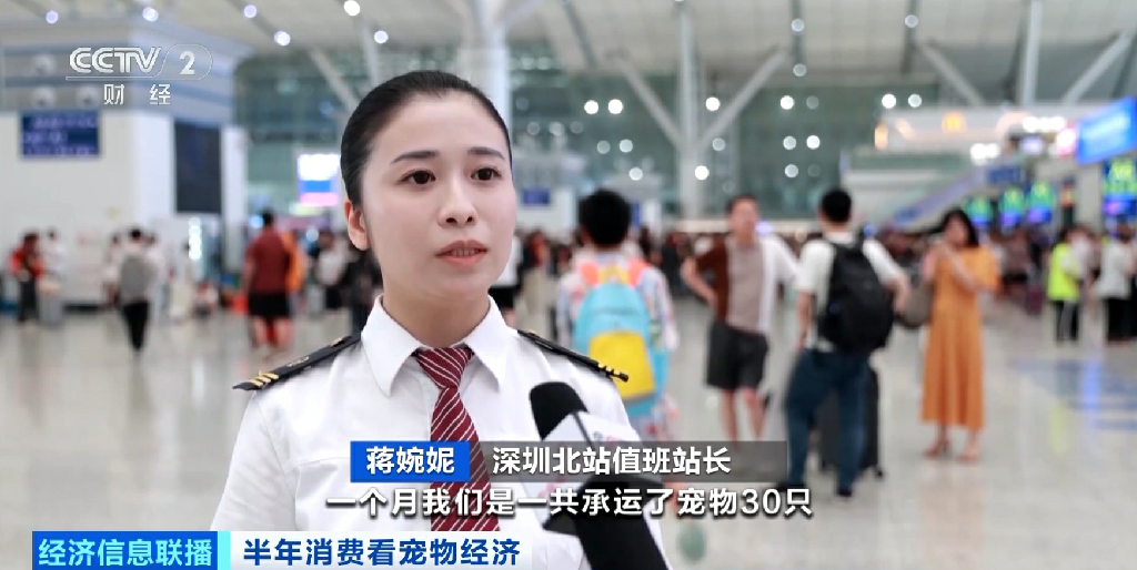 深圳北站值班站長 蔣婉妮:深圳北站從6月20日開通業(yè)務以來,一個月共承運寵物30只,到達寵物32只,尤其是現(xiàn)在進入暑期,我們幾乎每天都有寵物托運業(yè)務訂單。