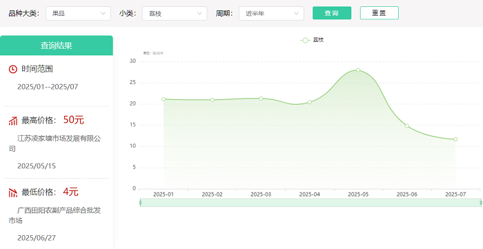 2025年上半年荔枝全國(guó)平均價(jià)格走勢(shì)圖
