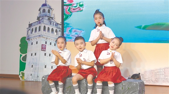????展演期間,來自全市的100多名少年兒童通過誦讀、演唱、舞蹈等形式,演繹了多首具有五邑地方特色的童謠?!锻霸挕苯T》用清澈童聲編織江門畫卷,《趣談龍舟節(jié)》展現(xiàn)了江門傳統(tǒng)龍舟節(jié)的熱鬧勁兒和熱血沸騰的場面,《碉樓邊的“金山謠”》帶著觀眾聆聽漂洋過海的鄉(xiāng)愁與牽掛。《僑鄉(xiāng)月光謠》《江門好嘢大集合》《江門?style》《蓬江河伴我長大》《臺山歡迎您》《氹氹轉(zhuǎn)之五邑童謠》《童謠誦五邑·童聲展鄉(xiāng)韻》《恩平燒餅謠》等富有創(chuàng)意的童謠表演,為僑鄉(xiāng)古韻注入了青春的活力,讓人耳目一新。