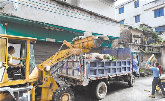 作為典型的城中村,里村社區(qū)因“三舊改造”及歷史遺留問(wèn)題,留存100多間閑置房屋,不少冷巷深處堆積著垃圾雜物,衛(wèi)生黑點(diǎn)較多,是蓬江區(qū)人居環(huán)境整治的重點(diǎn)區(qū)域?!拔覀儎澚?個(gè)片區(qū),分6組‘包干’推進(jìn),既要清垃圾、拆舊屋,還要徹底清理衛(wèi)生死角?!编u嘉琨說(shuō),在市、區(qū)、街道等各級(jí)機(jī)關(guān)企事業(yè)單位以及建筑企業(yè)、施工單位支持下,當(dāng)天集結(jié)的600人合力攻堅(jiān),清理廢棄綠植、閑置房屋積水雜物及建筑垃圾,全力保障群眾健康安全。