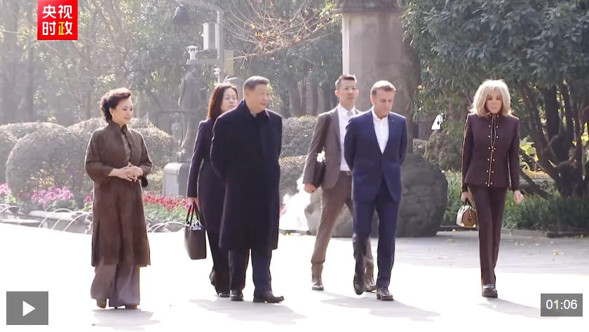 ??12月5日,國(guó)家主席習(xí)近平在四川省成都市都江堰同法國(guó)總統(tǒng)馬克龍進(jìn)行友好交流。