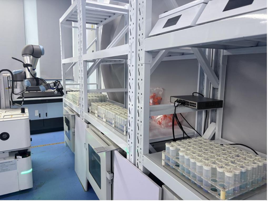 ??在實驗桌前,一名“智能科學(xué)家”正抬起結(jié)實的機(jī)械臂抓取試管,依次走過液體進(jìn)樣臺、磁力攪拌臺、烘干工作臺,進(jìn)行樣品稱重、攪拌、離心、烘干……