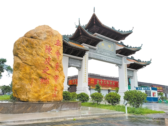 這是會(huì)城街道東甲村古老牌樓上的楹聯(lián)。東甲村位于新會(huì)舊城區(qū)之東,臨近江門大道東甲立交和新會(huì)城軌站,隔江門水道毗鄰江海禮樂,是新會(huì)有名的古村。據(jù)史料記載,東甲村于明初開村,已有600多年歷史,底蘊(yùn)深厚。
